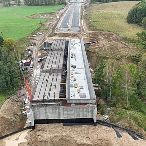 Film opublikowany przez GDDKiA pokazuje postęp prac we wrześniu, m.in. układanie nawierzchni, budowę obiektów inżynierskich i przygotowania do finalnych etapów robót drogowych.