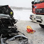 Zderzenie busa z ciężarówką na S11