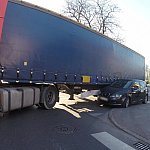 Ciężarówka i dwa auta osobowe po kolizji