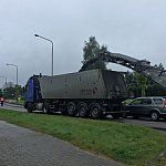 Ciężarówka w rowie. Poranek na DK11