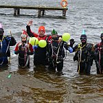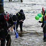 Płetwonurkowie i morsy przywitali Nowy Rok w wodach Trzesiecka