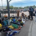 Tłumy mieszkańców i turystów przy stoiskach pełnych staroci podczas pchlego targu w Szczecinku.
