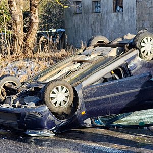 Kolizja samochodu osobowego z ciężarowym na drodze krajowej nr 25 pomiędzy Białym Borem a Człuchowem. Podczas wyprzedzana doszło do zderzenia opla z naczepą ciężarówki.