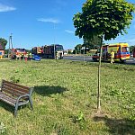 Groźny wypadek na drodze krajowej nr 11 w Lotyniu. Na skrzyżowaniu DK11 z ul. Wiśniową doszło do zderzenia samochodu osobowego z ciężarówką.