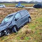 Groźnie wyglądająca kolizja na DW171 pod Przestawami. Jeden z kierowców wymusił pierwszeństwo, auto wpadło do rowu. Na miejscu pracuje policja – możliwe utrudnienia