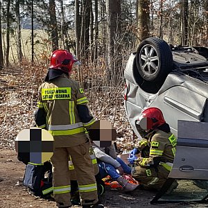 Poszkodowanej pierwszej pomocy udzieli inni kierowcy, którzy pomogli jej wydostać się z rozbitego samochodu. Kobieta uskarżała się między innymi na ból pleców. Trafiła pod opiekę strażaków, a następnie zespołu ratownictwa medycznego.
