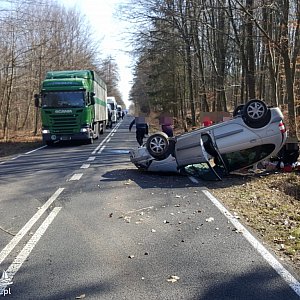 Dachowanie samochodu osobowego na drodze wojewódzkiej nr 172 w pobliżu Radacza. Do wypadku doszło w środę przed godziną 11:00.