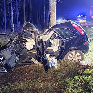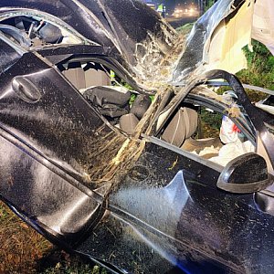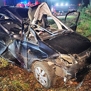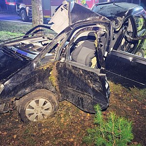 Siła uderzenia była na tyle duża, że po zderzeniu kierowca stracił panowanie nad pojazdem, który został wyrzucony na przeciwległy pas ruchu. Samochód przewrócił się na bok, a następnie dachem uderzył w drzewo. Kierowca został uwięziony wewnątrz pojazdu.