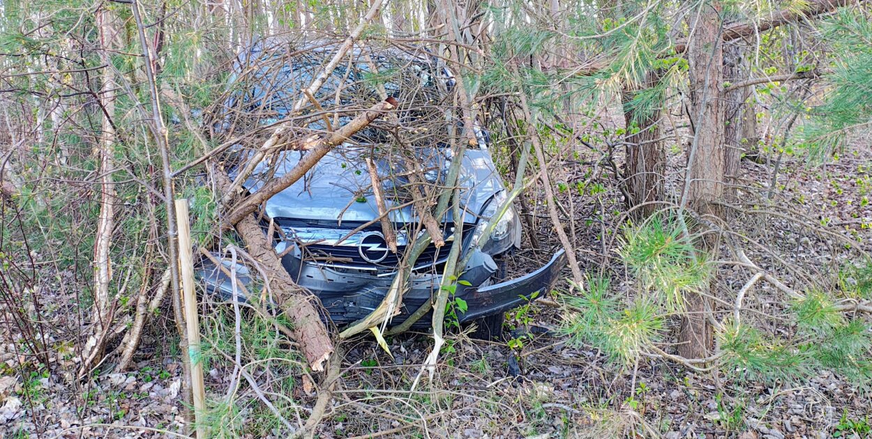 Uciekinier pędził w stronę Szczecinka. W rejonie Gwdy Wielkiej skręcił w boczną, leśną drogę. Tam jego jazda się skończyła. Stracił panowanie nad autem i rozbił je w lesie.