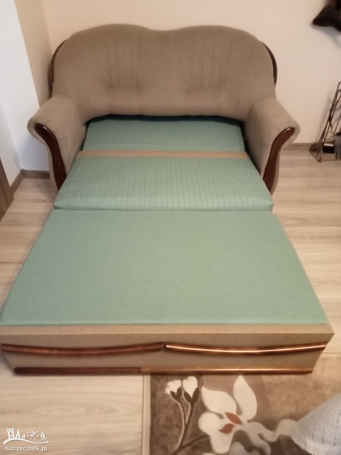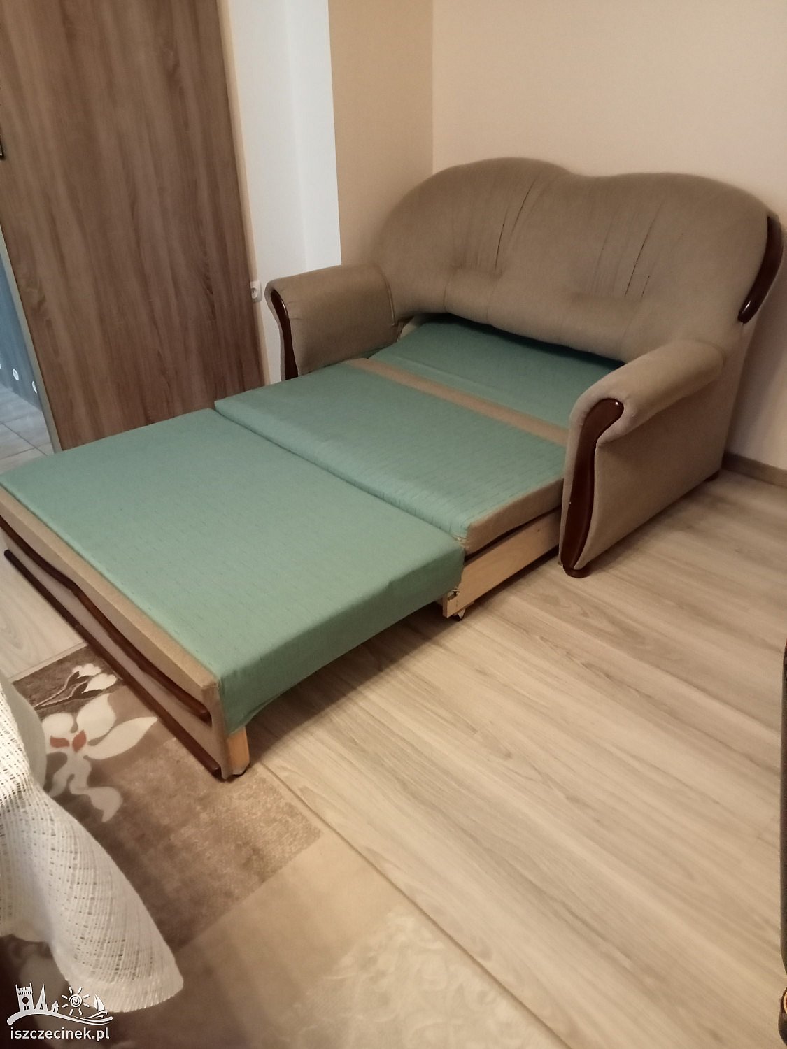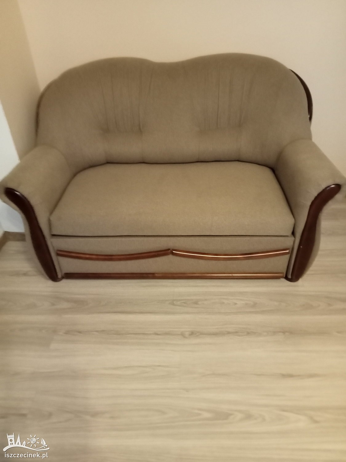 Sprzedam wygodną 2 osobową sofę rozkładaną z pojemnikiem na pościel, w kolorze szary beż.