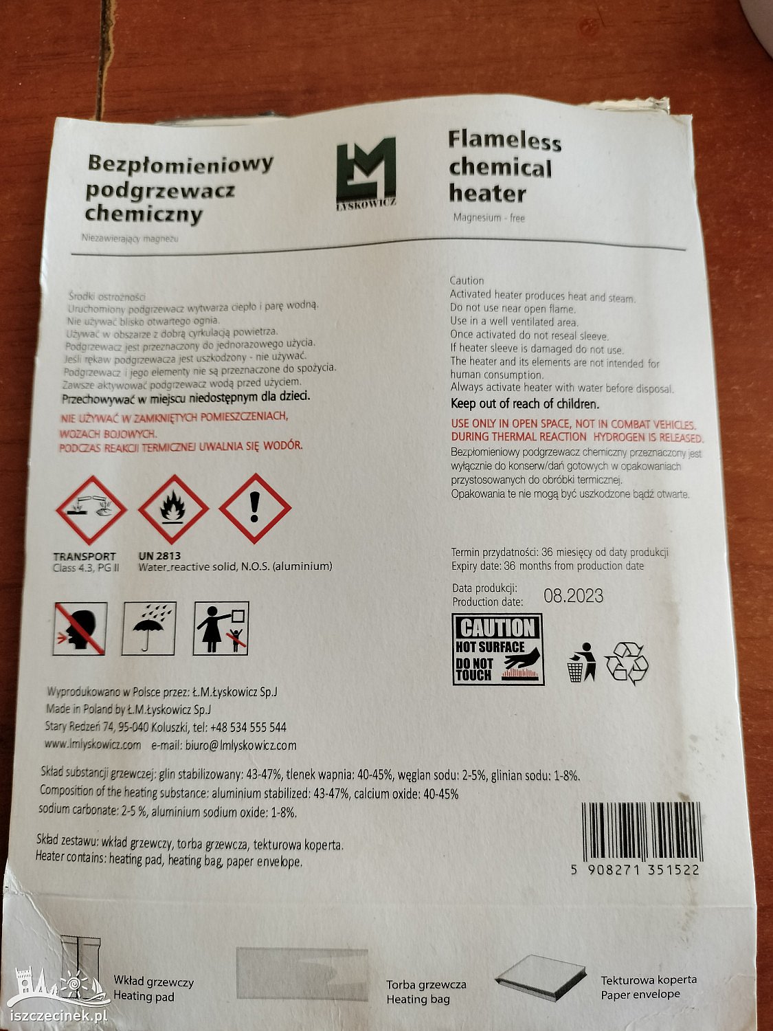Bezpłomieniowy podgrzewacz chemiczny spakowany w papierowym opakowaniu wraz z instrukcją obsługi,firmy lyskowicz. Mam 10 sztuk.