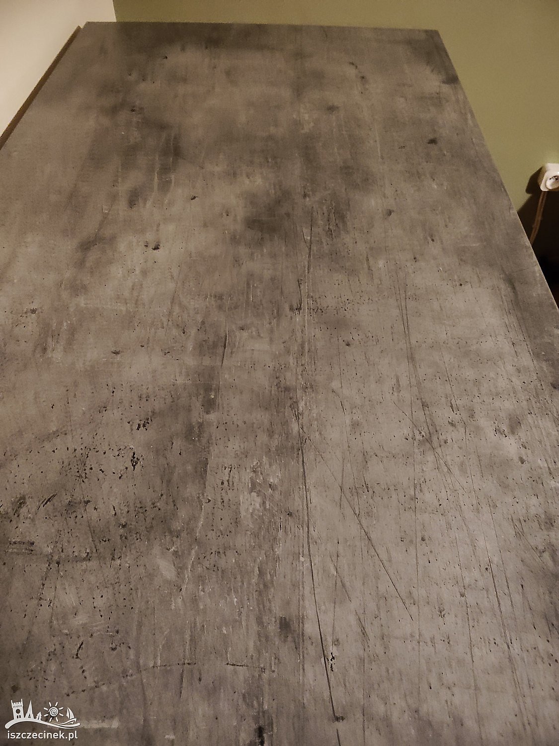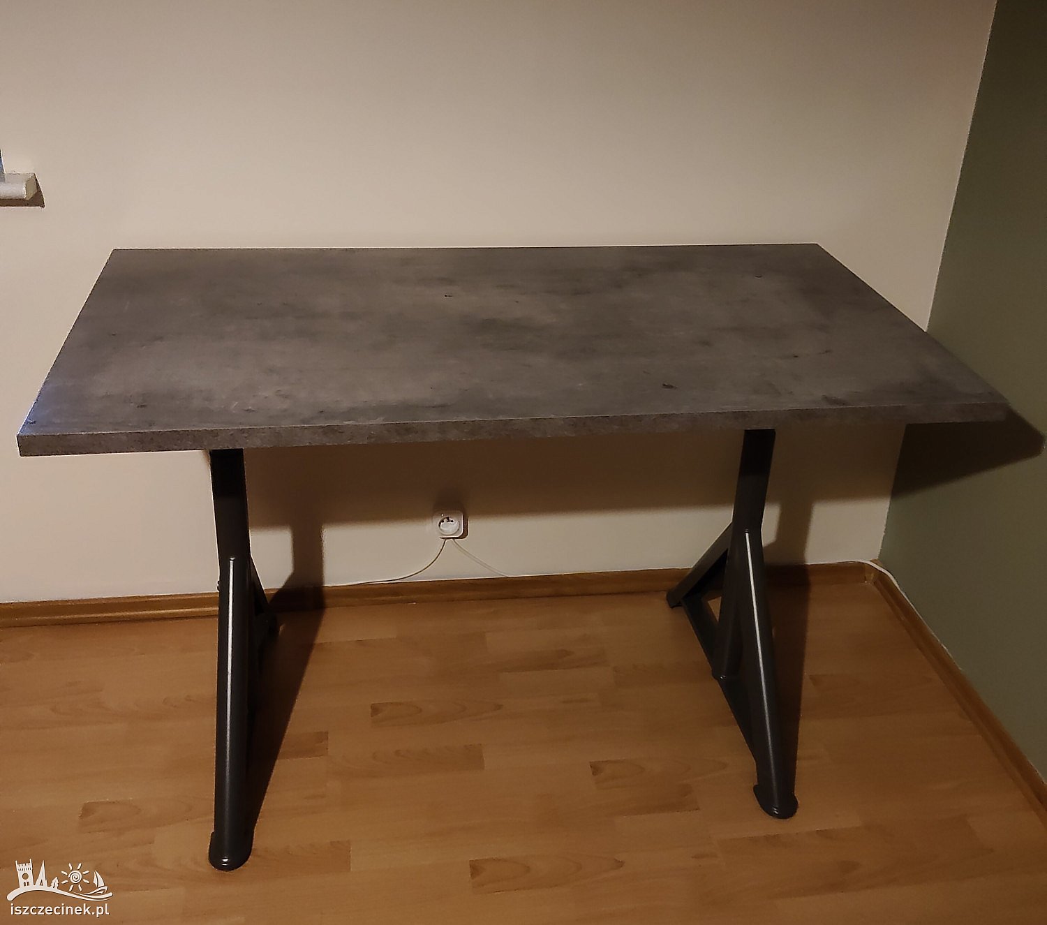Sprzedam stolik pod komputer z płyty w kolorze szarym imitacja beton o wymiarach szer. 70 cm, długość blatu 130 cm, wysokość 80 cm regulowana. Stan bardzo dobry.
