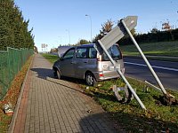 Toyota wjechała w drogowskaz. Kierowca pijany