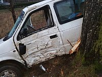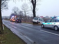 Wypadek koło Barwic. Droga Krajowa 172. Chrysler uderzył w drzewo.