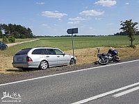 Wypadek z udziałem motocyklisty na ulicy Koszalińskiej. Przed przejściem dla pieszych motocyklista nie wyhamował przed samochodem osobowym, który zatrzymał się, aby przepuścić pieszych i uderzył w jego tył. Motocyklista upadł na jezdnię doznając obrażeń ciała.