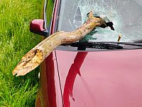 Wrak Audi po śmiertelnym wypadku na drodze Szczecinek–Spore. Mężczyzna zginął na miejscu.