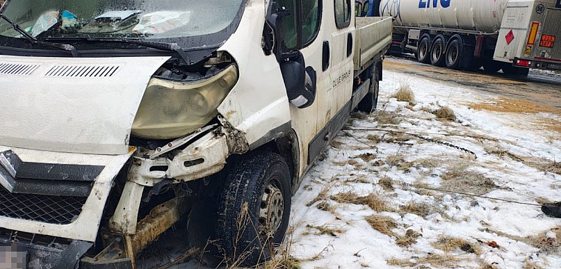 Bus uderzył w cysternę na oblodzonej drodze