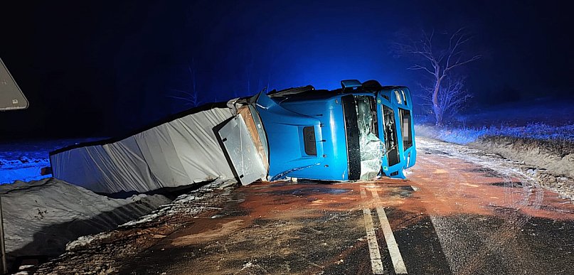 Do poważnego zdarzenia drogowego doszło w środę w godzinach wieczornych na drodze krajowej nr 11 pomiędzy Szczecinkiem a Wierzchowem. Na wysokości miejscowości Brodźcie (gm. Szczecinek) ciężarówka z naczepą przewróciła się na bok, całkowicie blokując jezdnię.